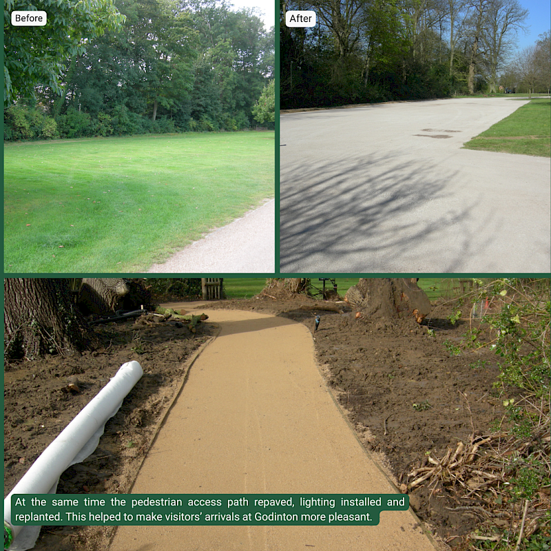 Look for a signpost for Godinton House about a quarter mile after the second roundabout, on your left (opposite the Hare & Hounds pub).